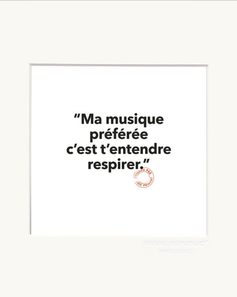 Une affiche format carré à la phrase amusante et décalée: "Ma musique préférée c'est t'entendre respirer"