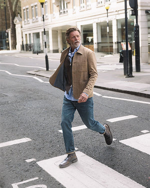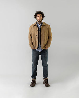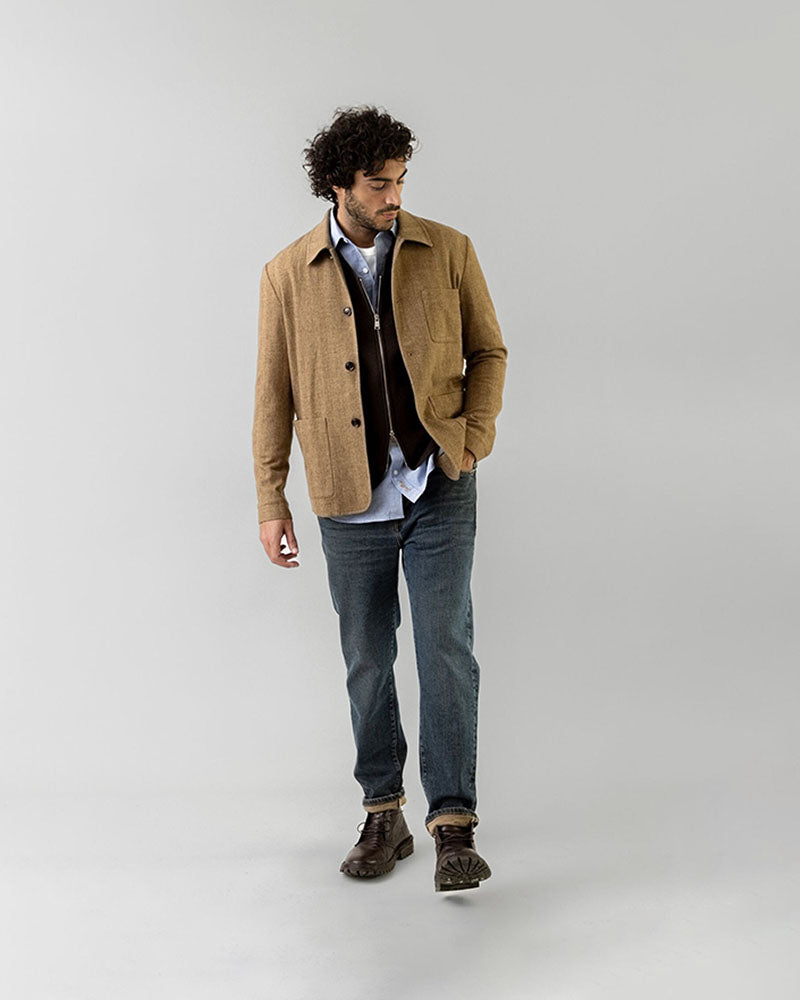 Coupe droite / confortable / Fermeture zippée et bouton à la taille / revers marron