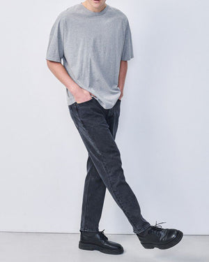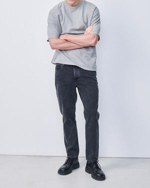 Jean Yopday / Coupe carotte / Denim coton / Délavage noir / Patch cuir / Style polyvalent