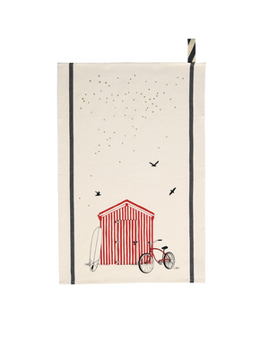 Un torchon de cuisine de la marque La Cerise Sur Le Gâteau. Le dessin représente une cabane rouge avec une planche de surf et un vélo. On adore cette super idée cadeau pour une maman ou un papa par exemple. Ce torchon made in Portugal est d'une qualité inégalée. Créez un lot avec cet autre torchon de la marque La Cerise Sur Le Gâteau.