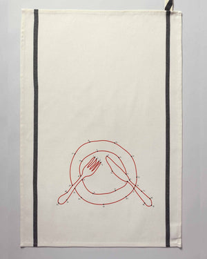 Un torchon de cuisine de la marque La Cerise Sur Le Gâteau. Le dessin représente des points représentant une assiette et des couverts . On adore cette super idée cadeau pour une maman ou un papa par exemple. Ce torchon made in Portugal est d'une qualité inégalée. Créez un lot avec cet autre torchon de la marque La Cerise Sur Le Gâteau.