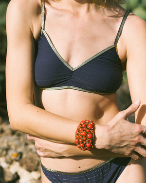 Une brassière au jolie décolleté / mousses amovible / bandes élastiques dorées / confortable et élégant