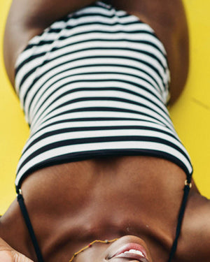 Découvrez notre maillot de bain rayé noir et blanc, conçu pour allier style intemporel et confort absolu. Tissu fabriqué en Espagne, chic et élégant aux rayures contrastées avec pointes de lurex.Avec ses rayures élégantes, sa coupe flatteuse et son tissu de qualité, il sublime toutes les silhouettes. Idéal pour une journée à la plage ou au bord de la piscine, ce maillot est votre allié mode de l'été.