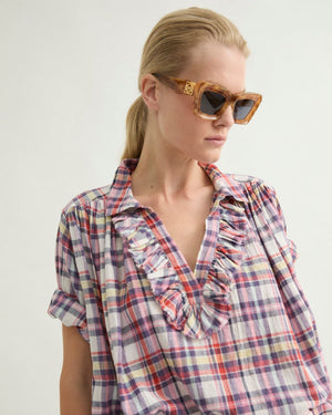 La chemise Didi multicolore pour femme de chez Laurence Bras. On adore cette jolie chemise parfaite pour la saison. Sa coupe ample, son col revers à volants et ses manches courtes avec ourlets donne un style décontracté à votre tenue.