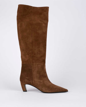 Bottes hautes / raffinées / cuir suédé / design soigné / finition effet faux plis / unique / décontractée / talon carré / confortable