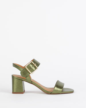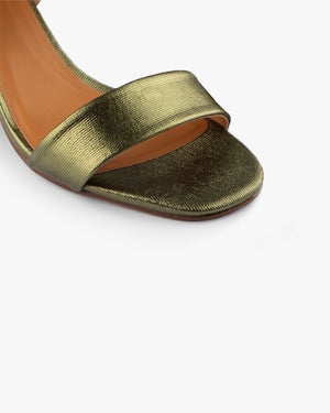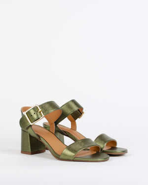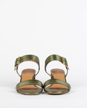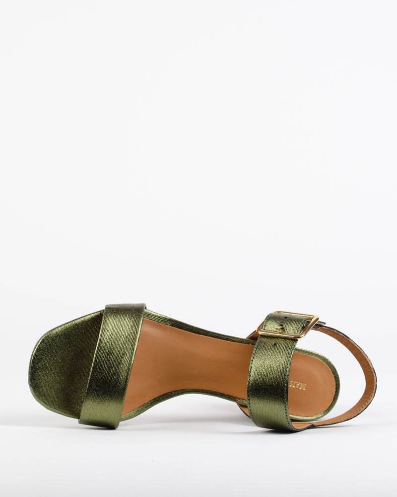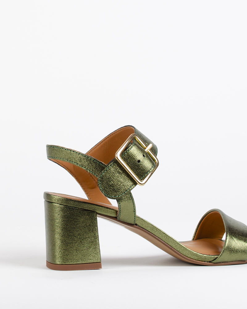 Apportez une touche d’élégance et de modernité à votre garde-robe avec les escarpins Sharon métallisés kaki de la marque Maison Toufet. Confectionnés en cuir effet métallisé, ces sandales à talons allient style et confort grâce à leur talon bloc et leur boucle ajustable dorée. Associez ces escarpins à une robe fluide ou un jean flare pour un look sophistiqué et moderne.