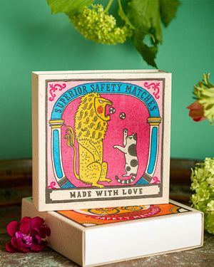 Boite allumettes / rose et bleu /dessin tigre et chat / festif / objet déco original