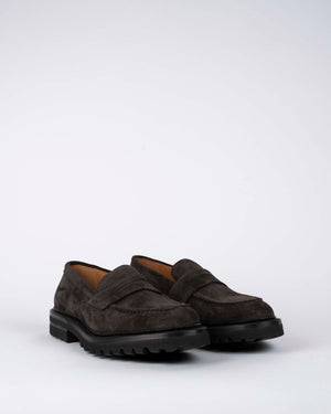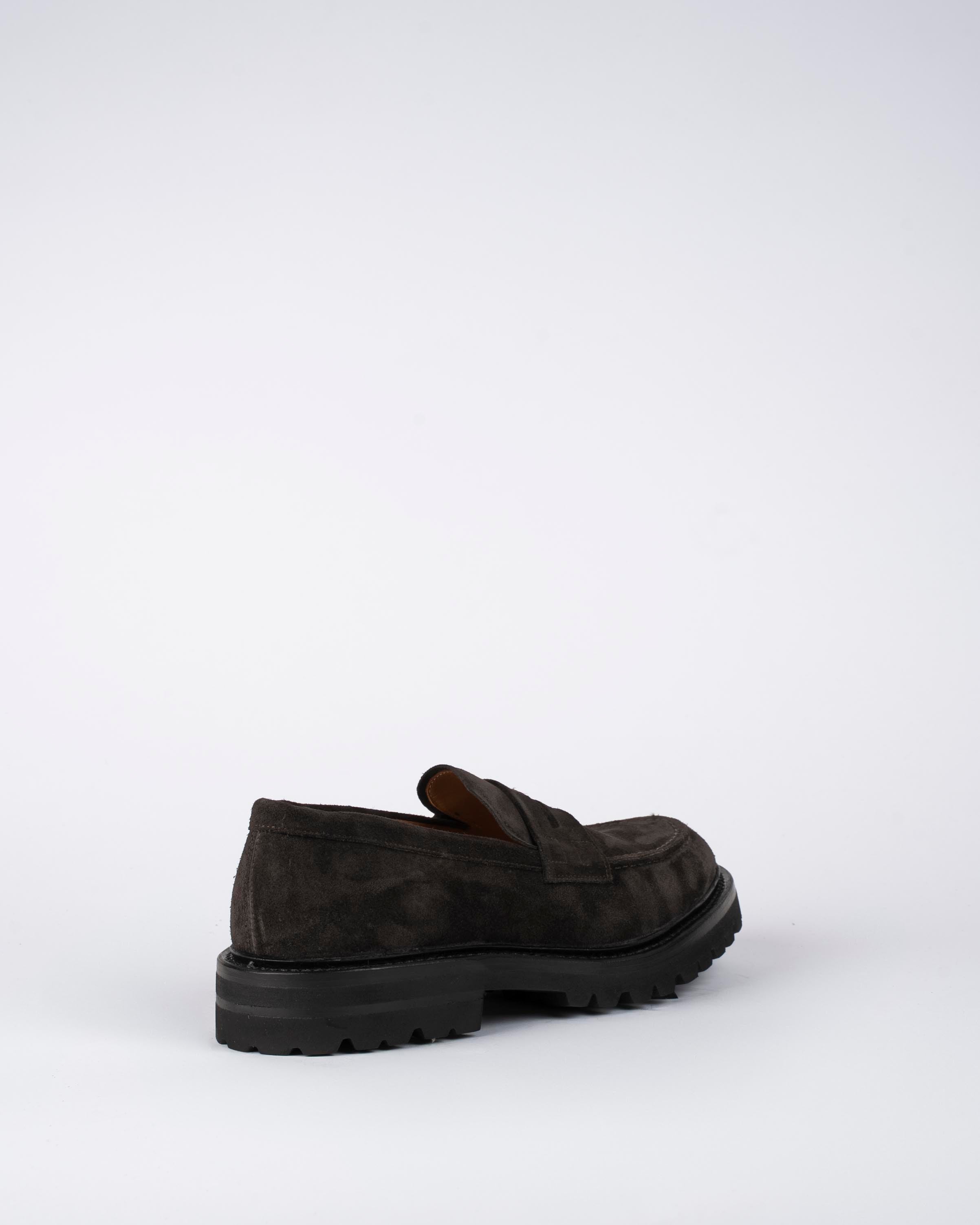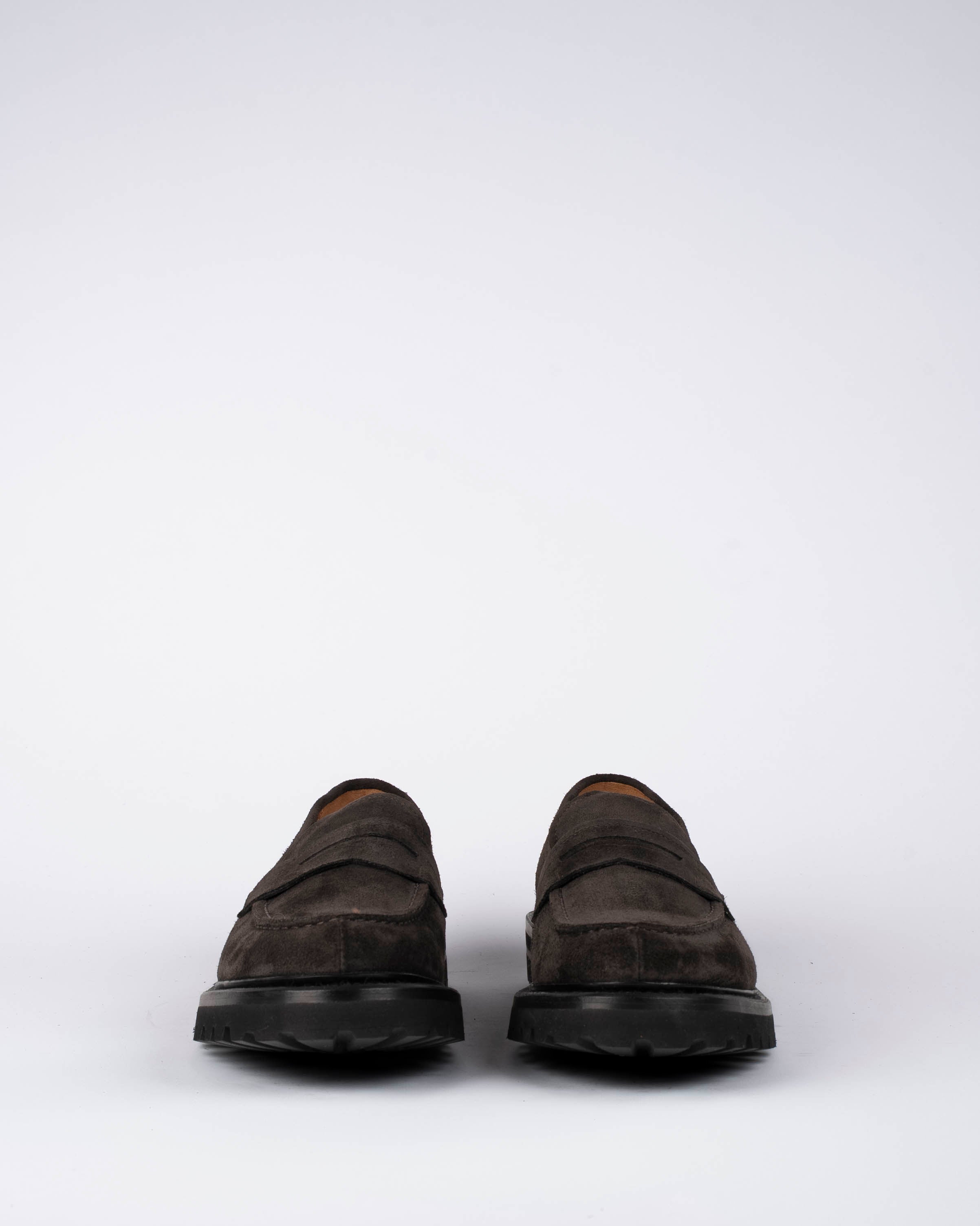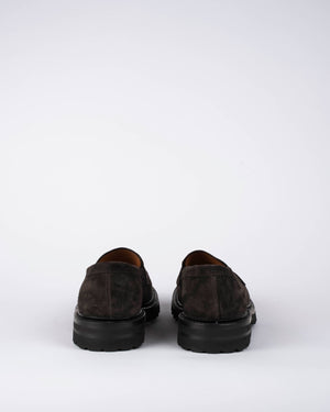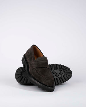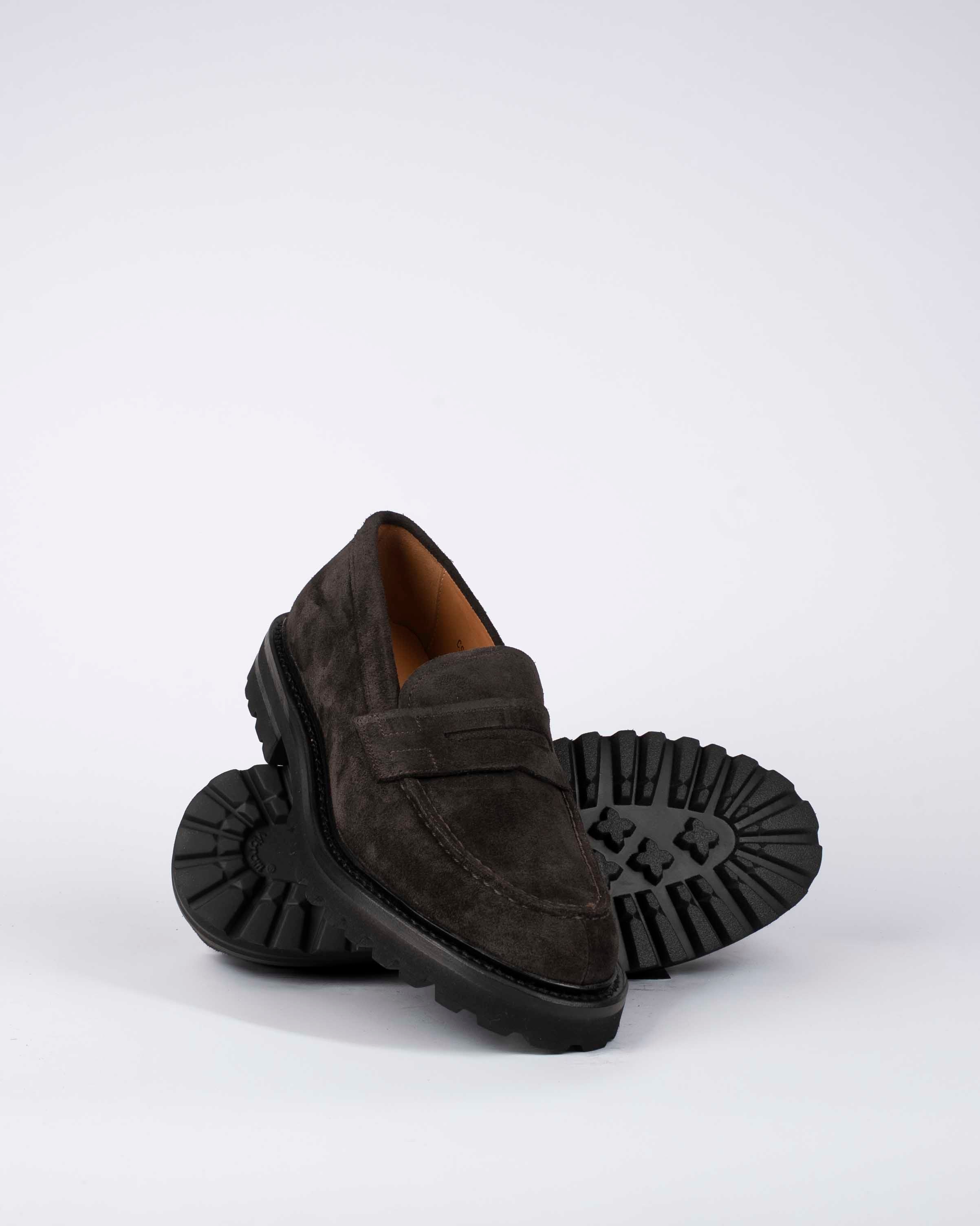 Mocassins en suède / Coloris marron foncé / Semelle épaisse crantée / Détail initiale sur le dessus / Style chic et décontracté
