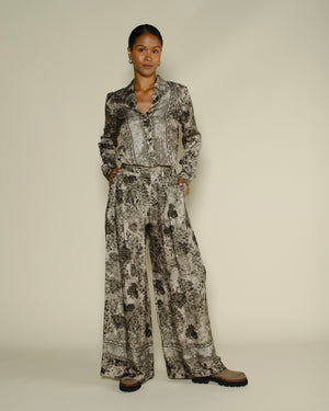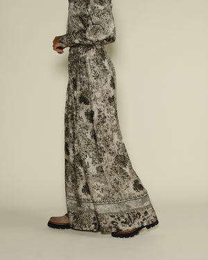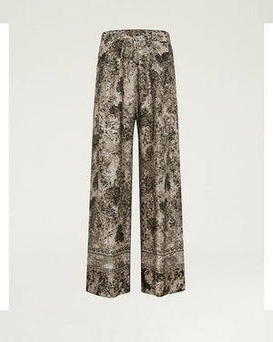 Pantalon jacquard en viscose / Coupe large et fluide / Plis marqués sur le devant / Ceinture avec maxi passants et dos élastiqué / Poches latérales pratiques / Tissu fin et léger en viscose jacquard