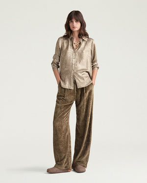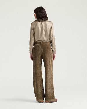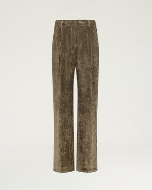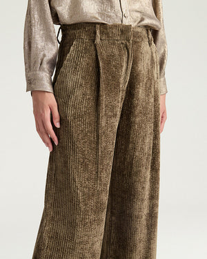 pantalon pince en velours côtelé / sangle construite avec passants / fermeture avec zip et bouton en corne