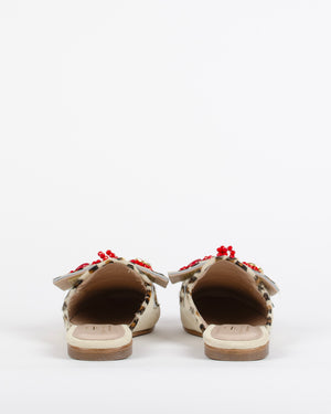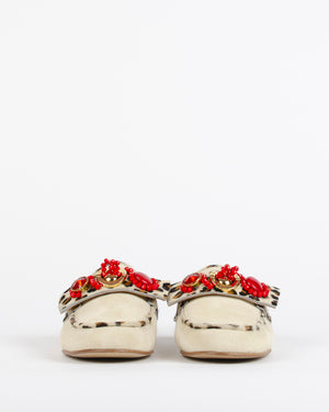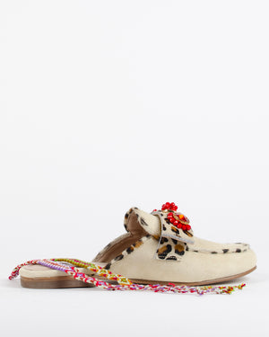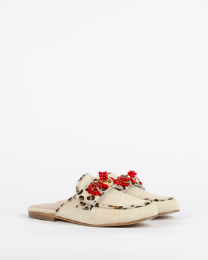 Des mules en cuir suédé pour femme de la marque Elina Linardaki. Ces mules sont l'alliance parfaite entre originalité et élégance. Avec leurs détails imprimé léopard et leurs pierres en ornement amovible, c'est la paire qui ajoutera une touche de peps à vos tenues !