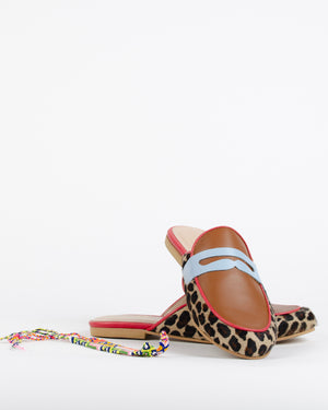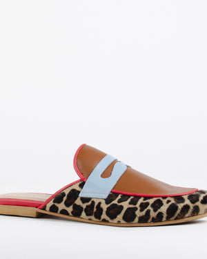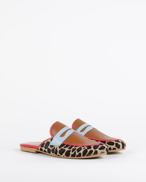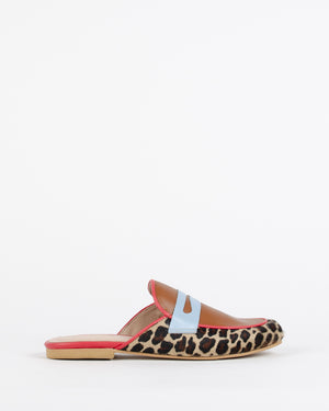 Des mules en cuir suédé pour femme de la marque Elina Linardaki. Ces mules sont l'alliance parfaite entre originalité et élégance. Avec leur imprimé léopard et leurs couleurs vives, c'est la paire qui ajoutera une touche de peps à vos tenues !