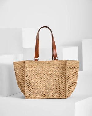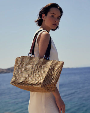 Composition : 100% raphia naturel (matière naturelle et durable). Les poignées sont en cuir de zébu tanné selon un procédé végétal.