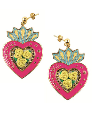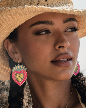 Exprimez votre style avec ces boucles d’oreilles cœur en laiton coloré, brodées à la main et ornées de l’inscription symbolique « Memento Mori ». Une pièce forte et originale, alliant artisanat et design audacieux.Découvrez Nahua ici !