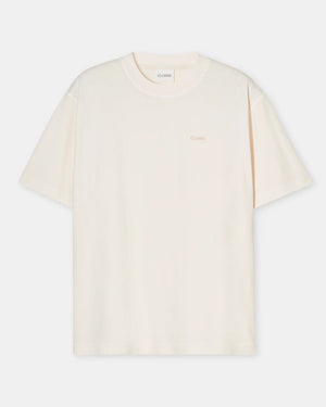 Coupe droite / Encolure ronde côtelée / Manches larges / Ourlet droit / Toucher doux / Logo imprimé
