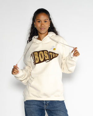 Sweat boston / blanc / Badges sur le côté / à capuche
