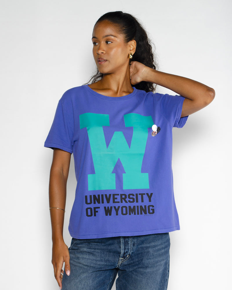 T-shirt Newtone Starlight / Bleu intense / Grand print “W” et inscription “University of Wyoming” / Manches courtes / Badges sur le côté / Esprit rock et affirmé