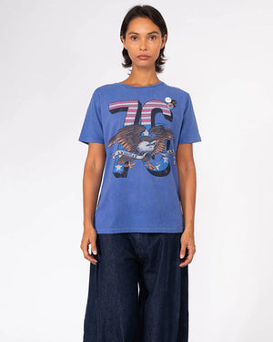 T-shirt Newtone Starlight / Bleu profond / Print aigle, numéro 76 & drapeau USA / Fit ajusté / Esprit rock vintage à l’américaine