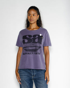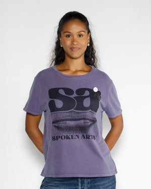 T-shirt Newtone Starlight / Violet profond / Print "SA Spoken Arts" + bouche graphique / Noir / Fit ajusté / Attitude arty et assumée /