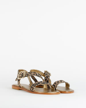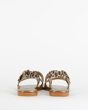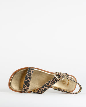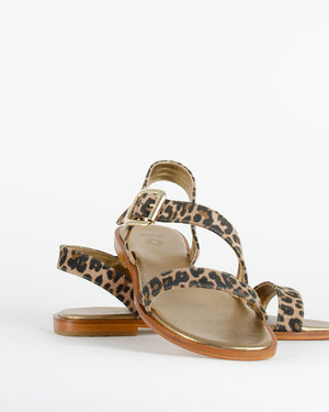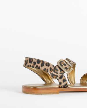 Sandales en cuir suédé pour femme de chez Nimal. L'alliance du motif léopard et des détails dorés en fait la paire idéale pour apporter une touche d'originalité à vos tenues estivales. Confortables et élégantes, elles se marient parfaitement avec une robe légère ou un short en denim !