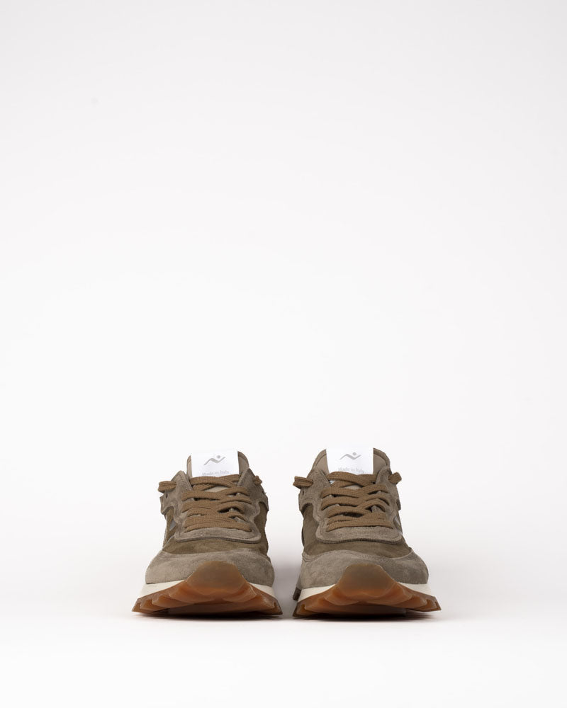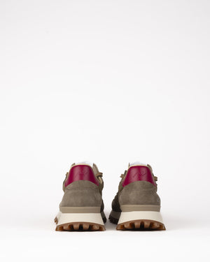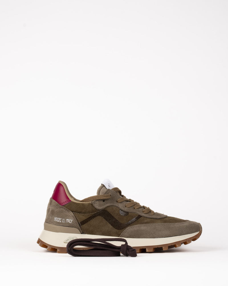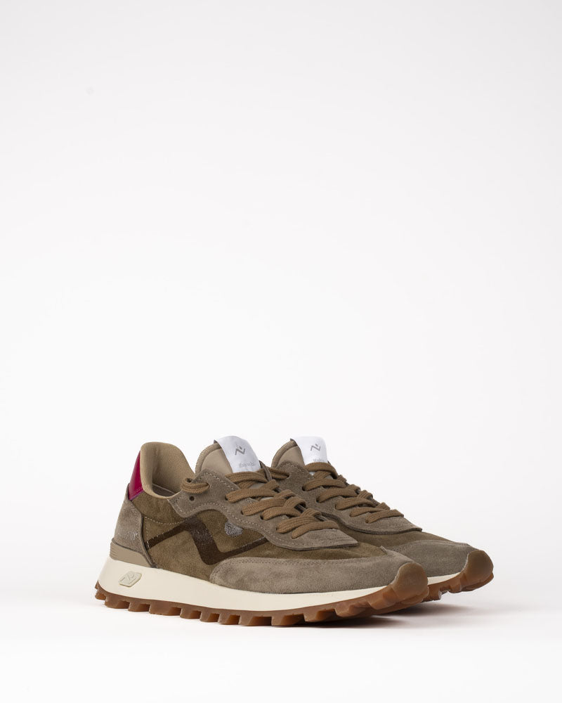 Baskets Nomap Society beige en cuir suédé / sneakers femme avec détail rose fuchsia / chaussures confortables et modernes pour le quotidien