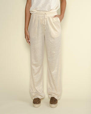 Un pantalon de couleur or pour femme de la marque Notshy. On adore ce pantalon pour femme confortable qui est parfait pour ajouter des paillettes à votre tenue. Pour les soirées comme la vie de tous les jours, vous allez l'adopter.