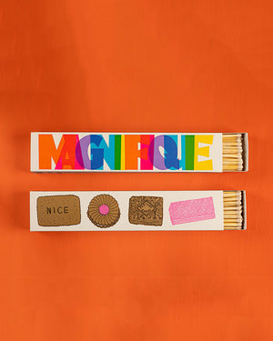 Une boîte d'allumettes "Magnifique" long matches de la marque Archivist. On adore longue boîte d'allumettes à l'inscription Magnifique. Cette boîte d'allumettes Archivist contient 45 allumettes qui mesurent chacune 28 cm.