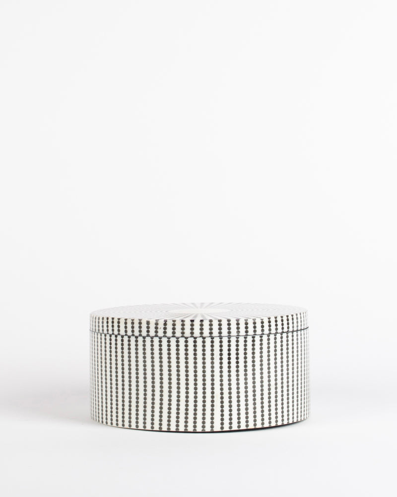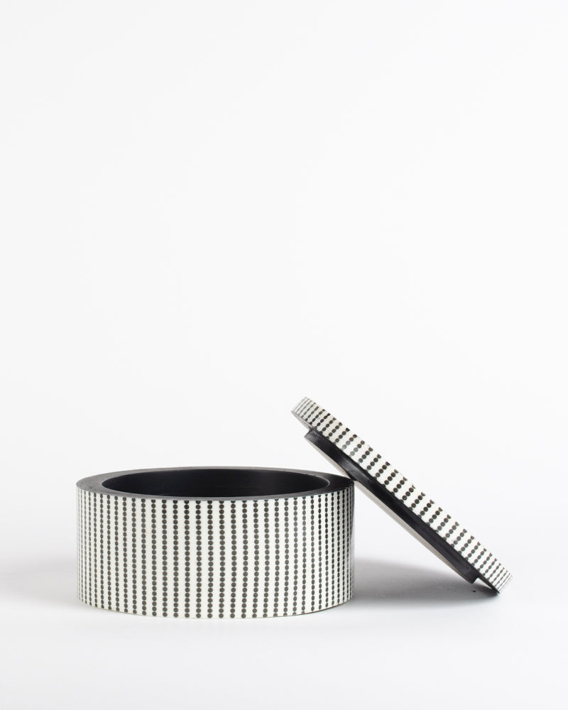 Petite mais pleine de charme, la boîte ronde Isabella de Bloomingville séduit par son design graphique et ses tons doux noir et blanc cassé. En résine, elle allie légèreté et originalité, tout en apportant une touche déco subtile à vos étagères ou votre table de chevet. Découvrez la marque Bloomingville chez POP.