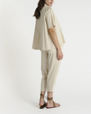 La chemise beige pour femme de la marque Hana San. Une chemise à manches courtes pour femme parfaite pour cette saison. C'est un basique à avoir dans sa garde robe qui ira avec tout ! Son côté fluide et léger est ultra agréable pour porter pendant les beaux jours.