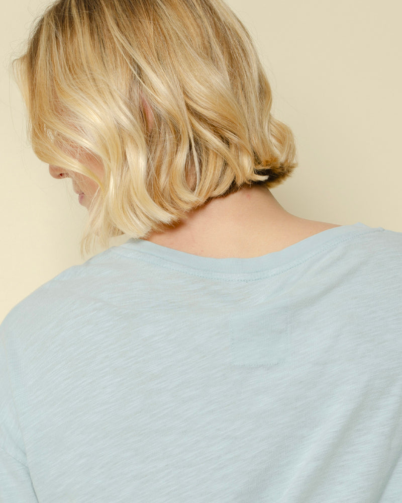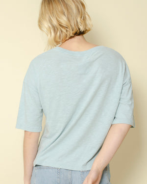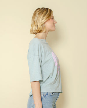 T-shirt One Tee / coloris ciel / motif “LOVE” rose avec palmier / coupe loose et manches 3/4