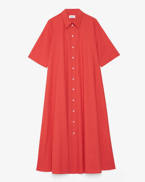 Robe longue / large / manches courtes / col de chemise classique / se ferme avec des boutons