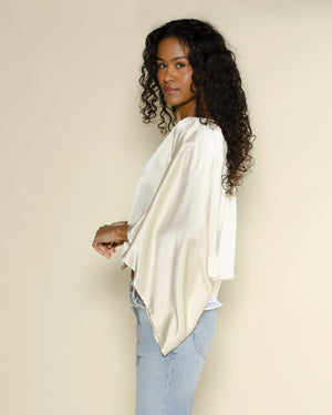 Découvrez la cape fluide pour femme signé Ottod'ame. Blouse fluide en pure viscose, avec manches amples et encolure droite.Confectionné dans un tissu léger et aérien, elle offre un tombé parfait pour un look bohème et tendance. Idéal pour une tenue décontractée ou chic selon vos envies.