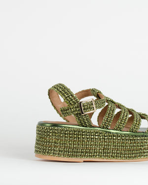 Les sandales kaki en raphia Fiorina incarnent l'élégance et l'originalité avec une touche artisanale. Leur finition en raphia doré apporte une allure sophistiquée et lumineuse, parfaite pour sublimer vos tenues estivales ou de soirée. Conçus pour allier style et confort, ces sandales offrent un maintien optimal grâce à leur fabrication soignée et leur coupe élégante.