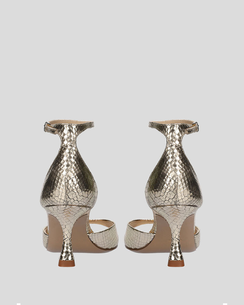Ces sandales à talons sont un "must have" de la saison. Le cuir effet python lui confère un côté classe et élégant, facilement cassable avec un jean oversize. On craque pour cette couleur brillante ! Découvrez ici la marque Lola Cruz.