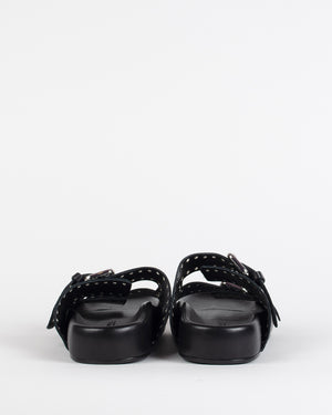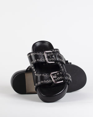 Adoptez un look affirmé avec les sandales Kennel & Schmenger noires à clous. Double bride, cuir de qualité et détails métalliques pour une allure rock et féminine. Le design à double bride assure un bon maintien du pied, tout en soulignant une silhouette féminine et affirmée. À la fois confortables et stylées, ces sandales s’intègrent parfaitement à un look casual chic, du jean au tailleur fluide.