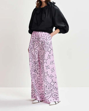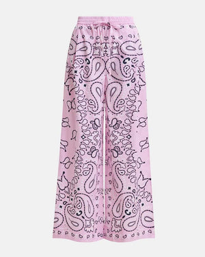 Pantalon aux motifs bandana audacieux. La coupe est décontractée et présente une silhouette à jambes larges. La taille est élastiquée avec un cordon de serrage qui garantie la coupe parfaite.