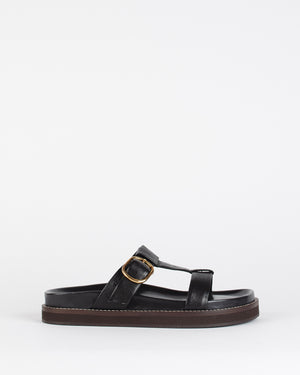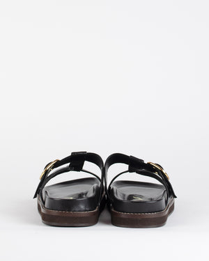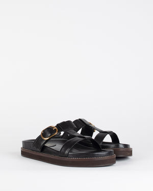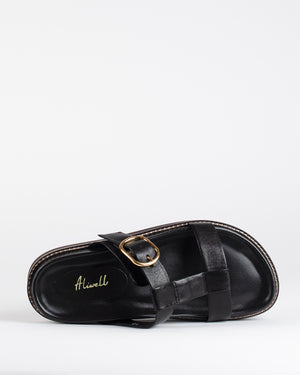 Mules en cuir pour femme de la marque Aliwell. Une paire de mules plates noires en cuir, avec une double bride sur l'avant du pied. Le talon libre à l'arrière rend cette paire moderne et tendance. Un indispensable pour cet été.