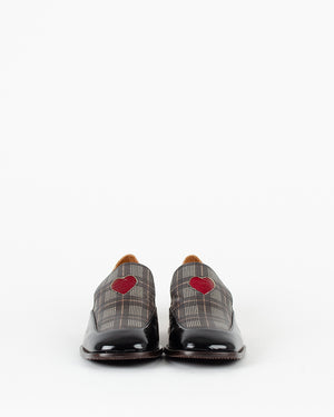 Une paire de mocassins de la marque Chie Mihara pour un look de girl boss cet hiver ! Avec un motif à carreaux et un coeur rouge sur la languette, on craque pour cette paire de mocassins pour femmes à talons !
