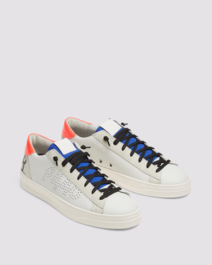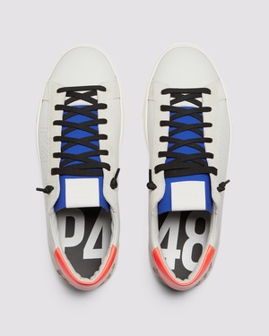 Cette paire de baskets basse pour homme signée P448 est bi-colore bleu marine et orange. La forme est classique mais le design et le choix des couleurs est original. C'est une paire de baskets idéale pour mettre de la couleur dans vos tenues.