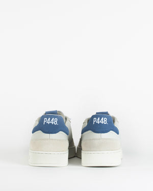 Cette paire de baskets basse pour homme signée P448, est réalisée en cuir effet velours. Le mélange de matières et la semelle beige ajoutent un côté décontracté. Elles seront parfaites pour la collection printemps été !