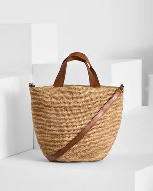 Composition: 100% raphia naturel (matière naturelle et durable). Les poignées sont en cuir de zébu tanné selon un procédé végétal.