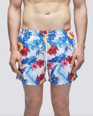 Un maillot de bain fleuri pour homme de la marque Sundek. Ce short de bain pour homme a une culotte en filet interne avec des poches sur les côtés. Il présente une autre poche plaquée avec un rabat fermé par velcro. La coupe est taille basse. On est fan de ce short de bain à fleurs ! Découvrez tout Sundek.