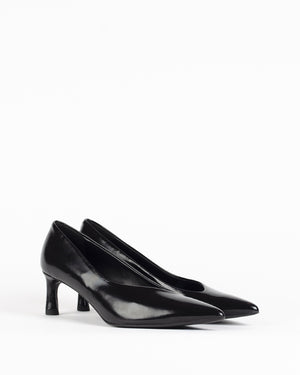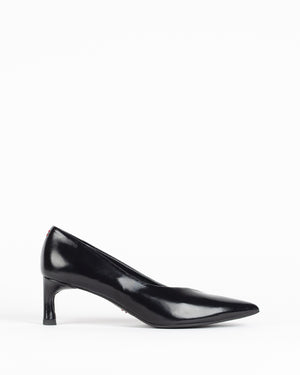 Escarpins en cuir vernis noir / Coupe élégante et féminine / Bout pointu allongeant la silhouette / Petit talon discret et confortable / Cuir vernis brillant