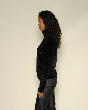 sous pull à strass manches longues / pièce classe avec effet velours et seconde peau
