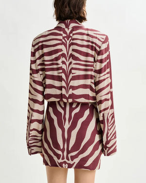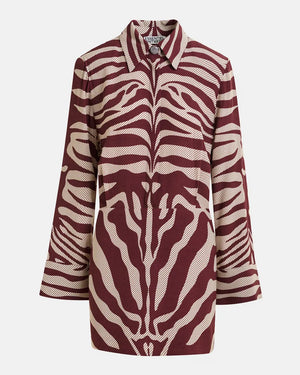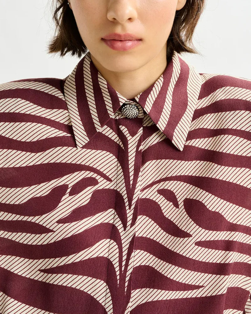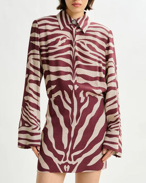 Mini-robe jacquard zébré / Coupe décontractée / Épaulettes / Plis creux à la taille / Patte de boutonnage dissimulée avec détail bouton col / Fermeture zippée invisible
