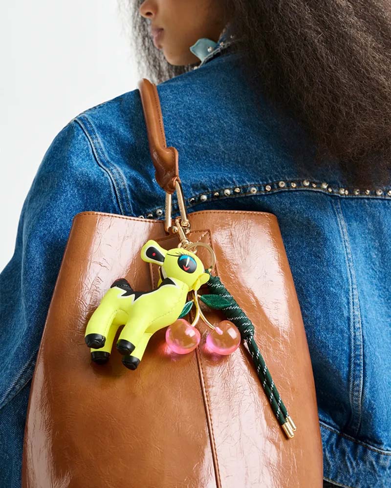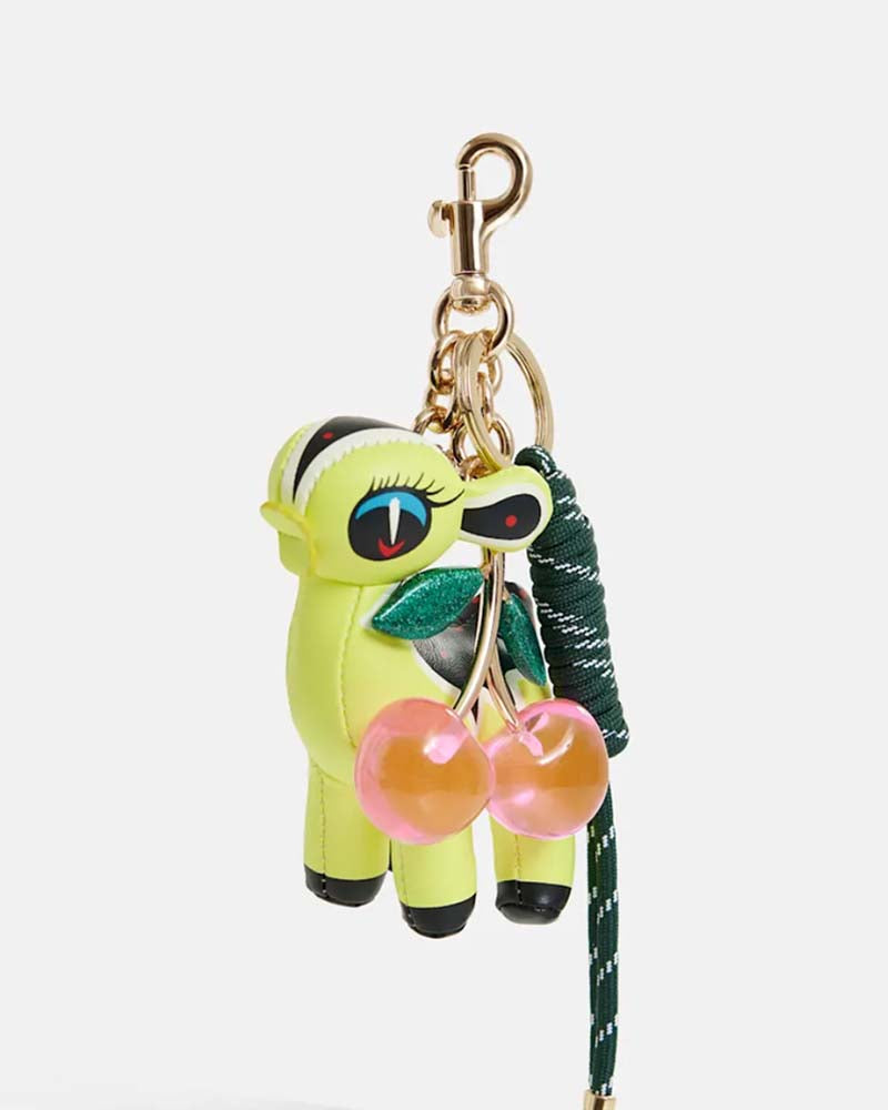 breloque de sac / cerf / cerise / fermoir mousqueton / pour cabas ou clés