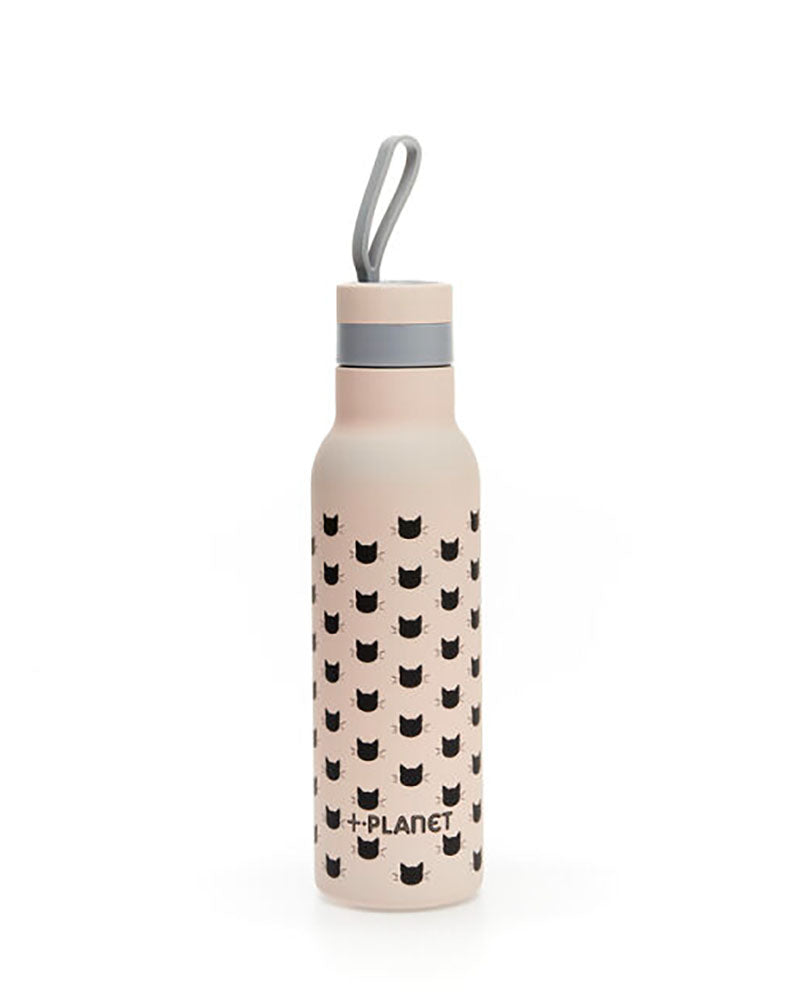 Une bouteille thermique de la marque Più Forty. On craque pour son motif tête de chat.