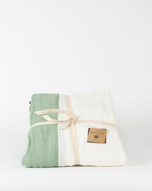 Une jolie nappe en lin verte et blanche de la marque Pomax. Parfaite pour decorer votre table ou aller pique-niquer et profiter du soleil d'été !