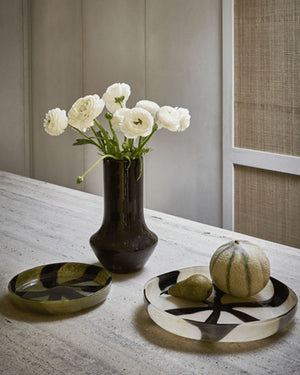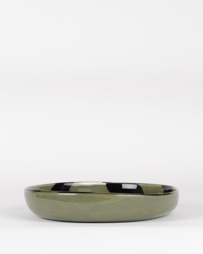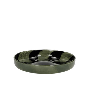 aspect peint à la main / motifs en forme de capsule / tons verts terreux / service de table