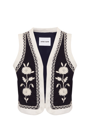 Un gilet à motifs sans manches pour femme de la marque Antik Batik. Ce gilet pour femme à l'esprit bohème est parfaite pour cet été. On adore les broderie de ce gilet pour femme. Retrouvez juste ici la marque Antik Batik.